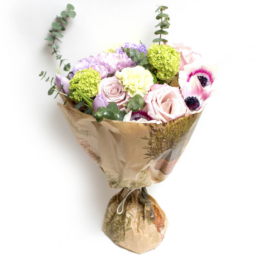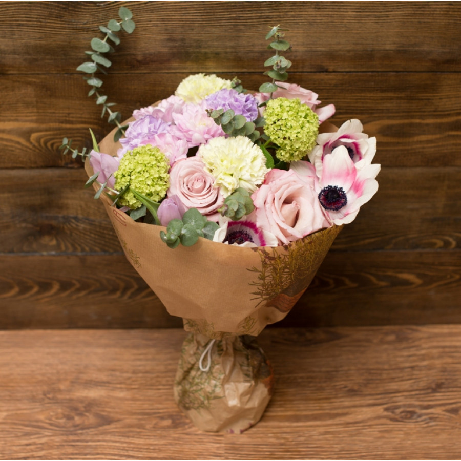 Ищите букет, который придется по душе самым утонченным натурам? Тогда это именно то сочетание роз, анемона, тюльпанов, гвоздик, хризантем, живого декора в виде вибурнума и папоротника, которое Вам необходимо. Несмотря на обилие компонентов, данный букет смотрится очень элегантно и оригинально, а несравненные ароматы свежесрезанных цветов надолго обеспечат комнату изысканными запахами весны и молодости.